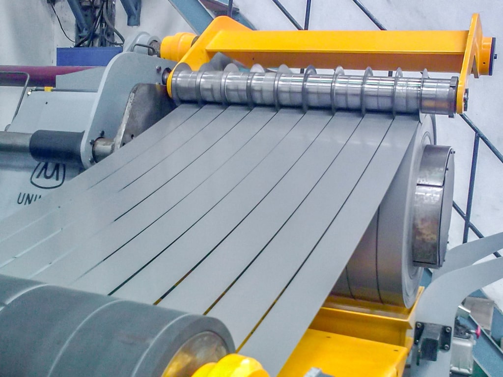Dilme Hattı, rulo halindeki sac malzemenin dairesel bıçaklar arasından geçirilerek dar ...